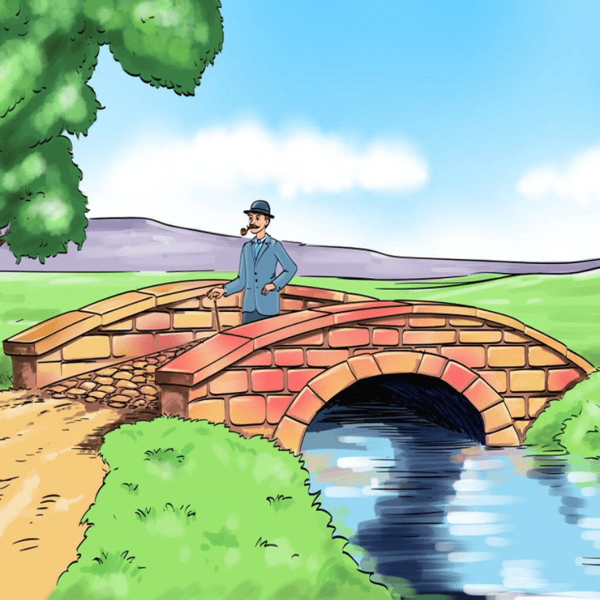 A feladvány lényege nem az úriember, nem a pipa, és nem is a háttér. A hiba a híd és a patak kapcsolatában van.
