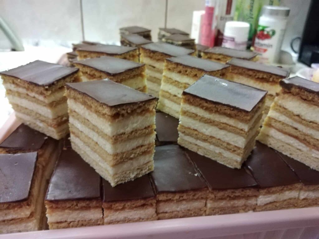 A sütés során még nem feltétlenül látszik, mennyire jó lesz a végeredmény. A lapok keményebbnek tűnnek, a krém különállónak hat. Az igazi változás a pihentetés alatt történik meg. Ahogy telik az idő, minden réteg összeérik, és a sütemény egységes egésszé válik.