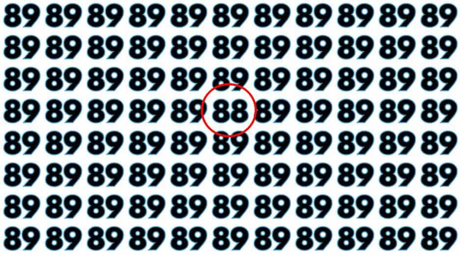 A 88-as szám valóban ott rejtőzik a negyedik sorban, egy csomó 89-es, 86-os és hasonló szám között! Ha sikerült gyorsan kiszúrnod, gratulálunk neked! Ha lassabban ment a megfejtés, akkor gyakorolj még egy kicsit, és egyre jobban fognak menni az ilyen és ehhez hasonló feladatok. Még a mindennapokban is hasznát veheted, hiszen fejleszti az észlelést, és a memóriát. A fejtörők kiváló intellektuális játékok, ráadásul egy kis kihívás mindig feldobja a napot!