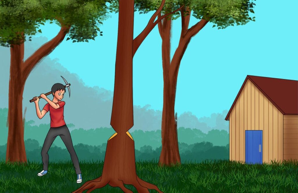 A rajzoló ezúttal nem a bokrok közé rejtette a csavart, és nem is a házikó körül kell keresgélni. A gond inkább ott van, ahol a legkevésbé várnád: magánál a munkánál. Pontosabban annál, amivel a favágó dolgozik.