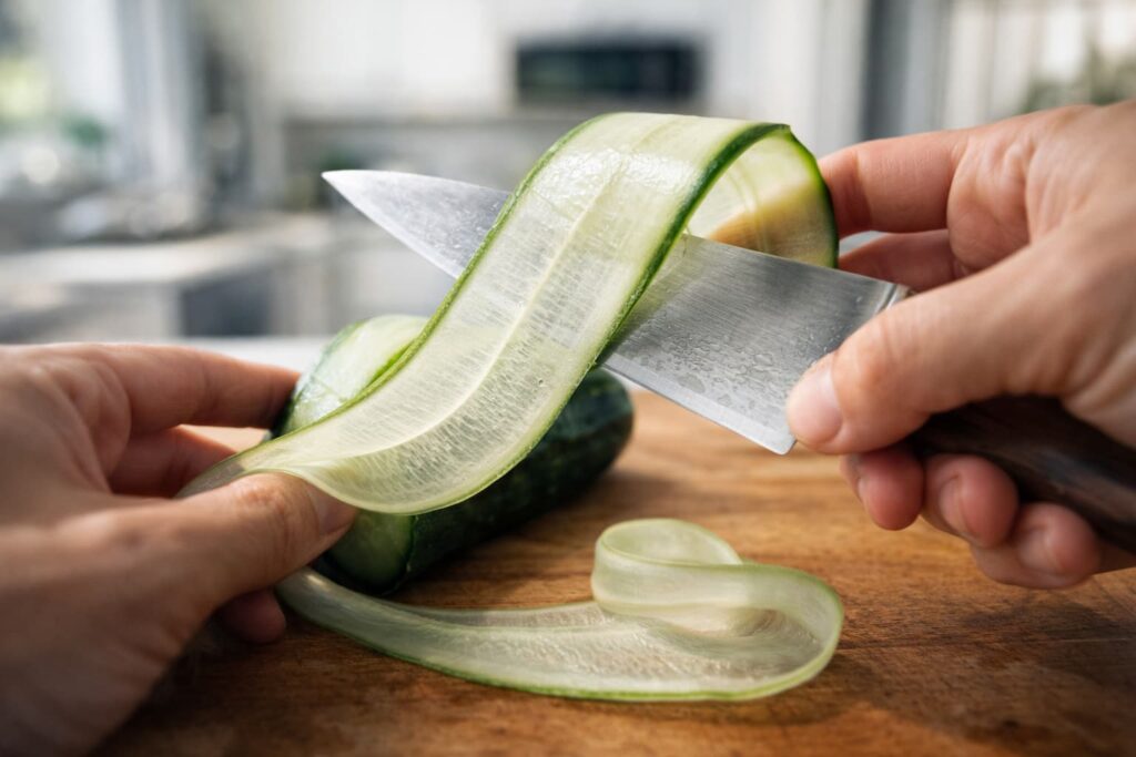 A katsuramuki egy folyamatos, vékony szeletelést takar, amellyel például daikont vagy répát hosszú, papírvékony lemezekké hámoznak. Az usuba egy speciális, egyélű konyhakéssel végzett zöldségvágási stílus, amely nagy pontosságot tesz lehetővé és évtizedes mesterségbeli tapasztalatot feltételez.