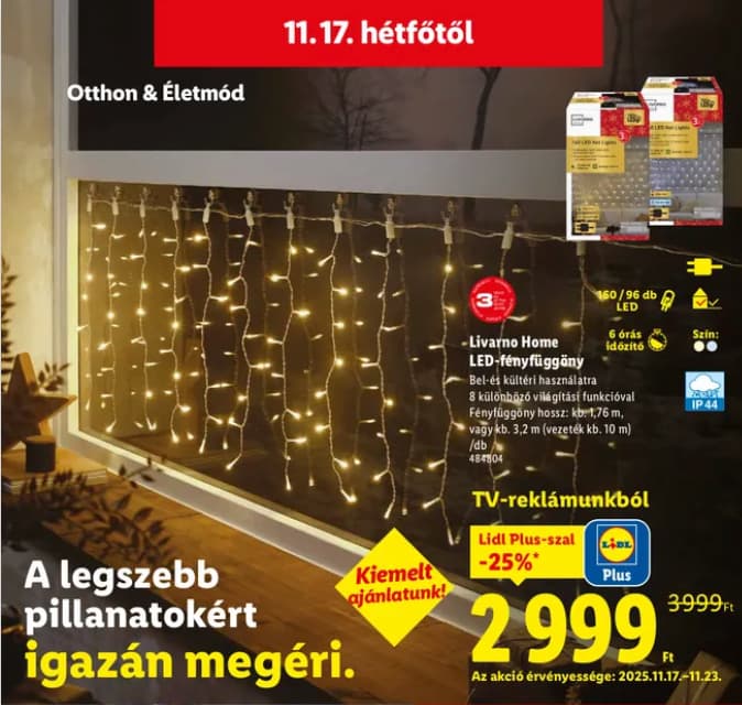 Van az a varázslatos este, amikor a levegő már hűvös, a konyhából fahéj és szegfűszeg illata száll, és egyszer csak felgyulladnak az első karácsonyi fények. A ház megtelik meleggel, a lelked pedig egy pillanatra megáll – mert tudod, hogy kezdődik. A Lidl most pontosan ezt az érzést hozza közelebb, méghozzá szinte hihetetlen áron: a Livarno Home LED-fényfüggöny mindössze 2999 forintért vihető el, ha van Lidl Plus-od.