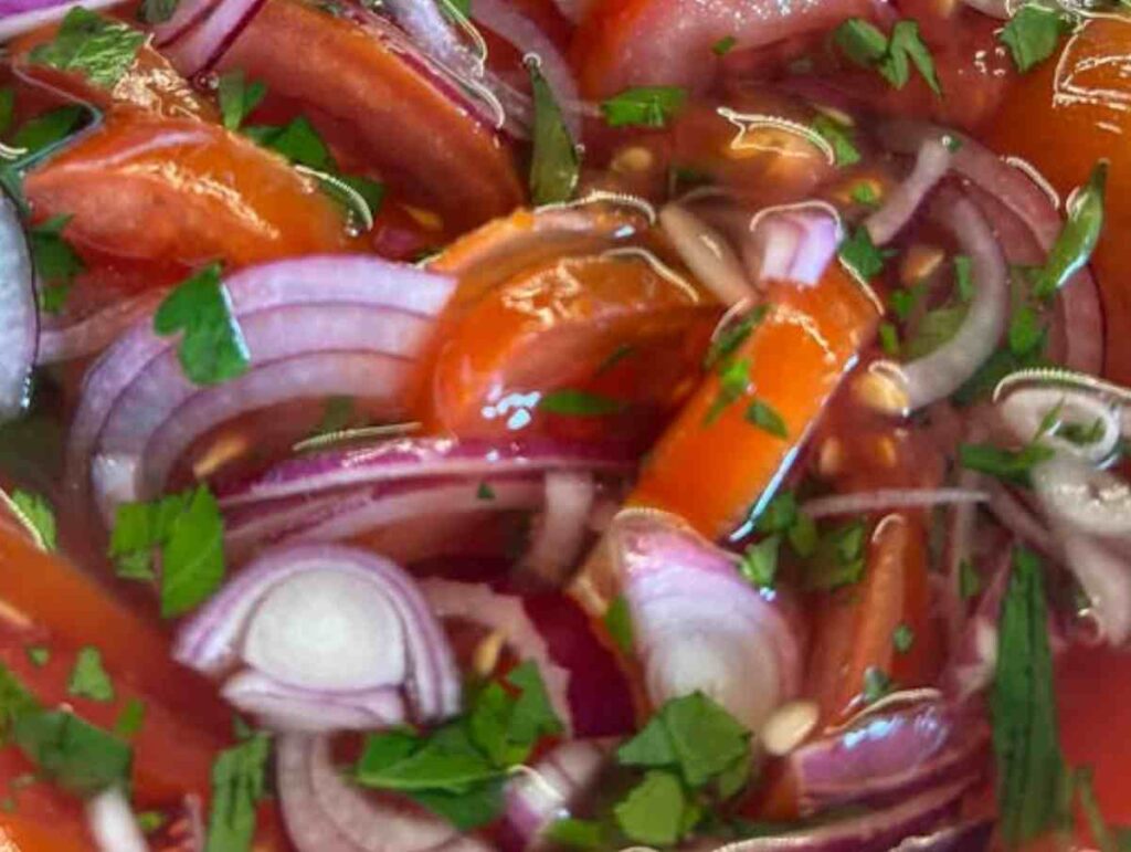 A paradicsomsaláta azért szerethető, mert nem akar tökéletes lenni. Mindig egy kicsit más, attól függően, ki készíti, milyen paradicsomból, milyen napja van. Talán pont ezért jólesik újra meg újra, főleg akkor, amikor már előre tudod, hogy holnap még finomabb lesz.