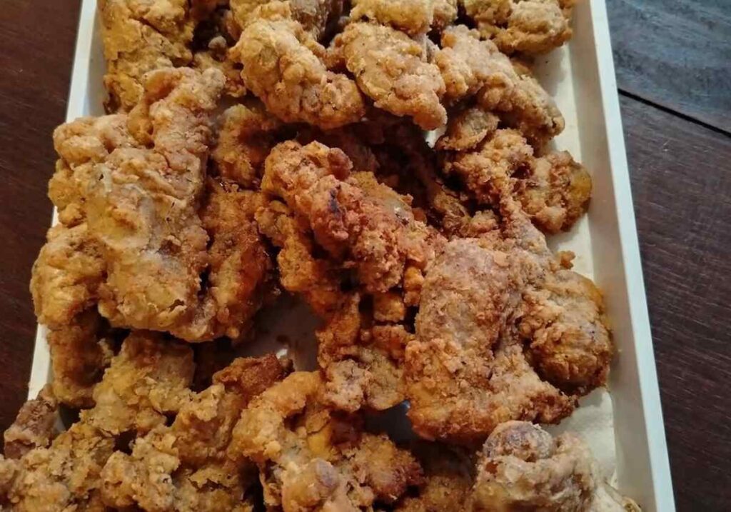 A kicsontozott darabok jönnek a szokásos sorrendben lisztbe, tojásba, majd zsemlemorzsába. Az olajban már csak aranyszínűre sütjük őket, hiszen a hús korábban megfőtt. Itt nem az idő, hanem a figyelem számít. A víztartalom miatt az olaj fröcskölhet, ezt mindenki tudja, aki már próbálta. A végére pedig valóban marad némi takarítás.