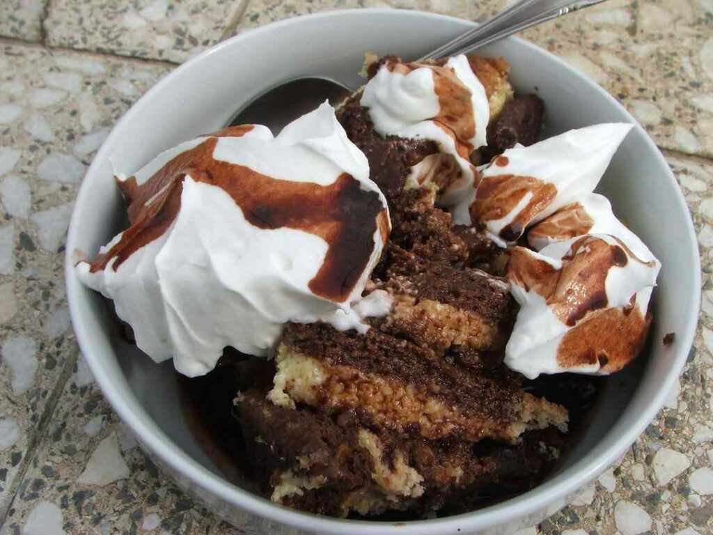 A tetejére tejszínhab kerül, bőkezűen. Aki szereti, rumos tejbe áztatott mazsolát is szórhat rá, de ez már ízlés kérdése. Van, aki esküszik rá, más inkább kihagyja.